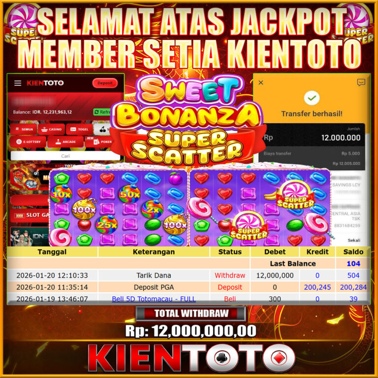 KIENTOTO JACKPOT Sweet Bonanza Super Scatter Rp12,000.000- SELASA ,20 JANUARY 2026Selamat kepada User id : echar***55 Telah berhasil mendapatkan kemenangan besar pada permainanSweet Bonanza Super Scatter kemenangan Sebesar Rp12,000.000, Setelah mengisi formulir withdraw dengan kurung waktu hanya 5 – 10 menit pihak KIENTOTO sudah melakukan transfer kepada pemilik User id dan dana sudah dapat di…