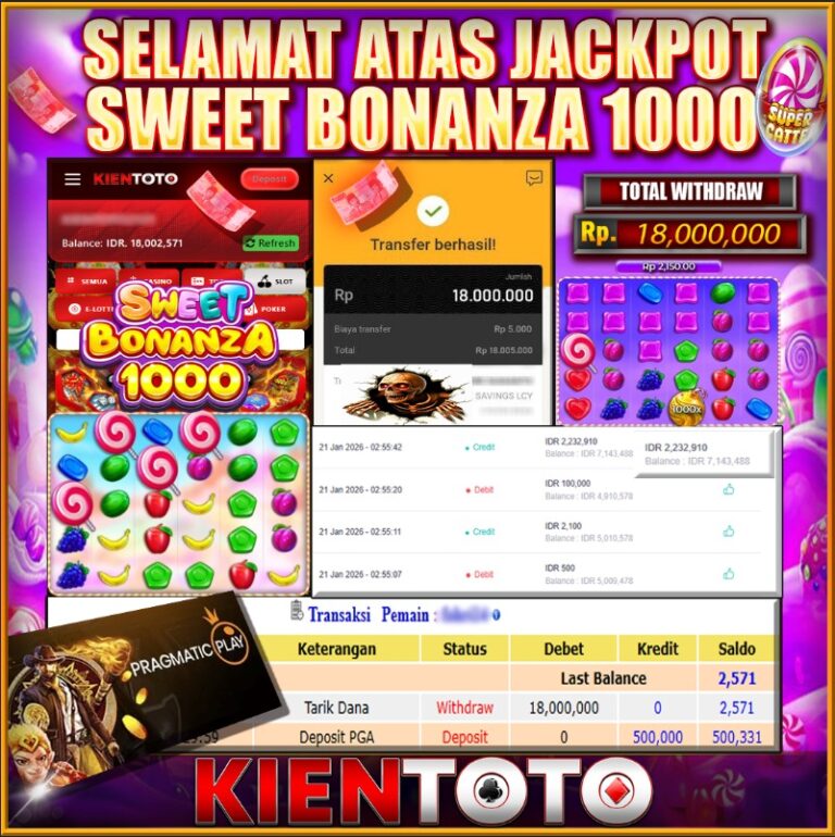 KIENTOTO JACKPOT Sweet Bonanza 1000 Rp18,000.000- RABU ,21 JANUARY 2026Selamat kepada User id : laga****11 Telah berhasil mendapatkan kemenangan besar pada permainanSweet Bonanza 1000 kemenangan Sebesar Rp18,000.000, Setelah mengisi formulir withdraw dengan kurung waktu hanya 5 – 10 menit pihak KIENTOTO sudah melakukan transfer kepada pemilik User id dan dana sudah dapat di cairkan oleh…