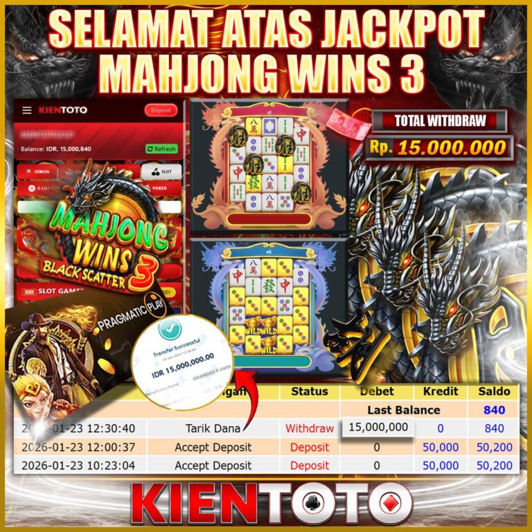 KIENTOTO JACKPOT Mahjong Wins 3 – Black Scatter Rp15,000.000- JUM,AT ,23 JANUARY 2026Selamat kepada User id : hih***888 Telah berhasil mendapatkan kemenangan besar pada permainanMahjong Wins 3 – Black Scatter kemenangan Sebesar Rp15,000.000, Setelah mengisi formulir withdraw dengan kurung waktu hanya 5 – 10 menit pihak KIENTOTO sudah melakukan transfer kepada pemilik User id dan…