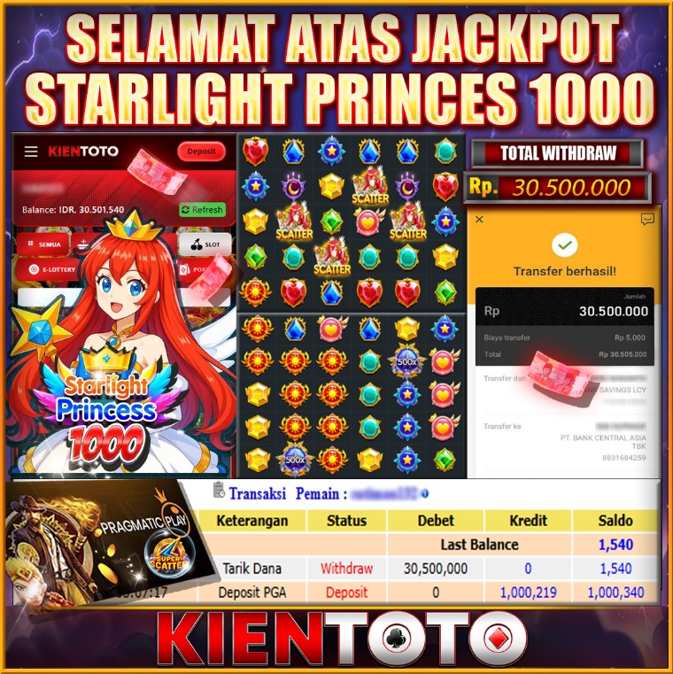 KIENTOTO JACKPOT SLOT Starlight Princess 1000 Rp15.000.000- LUNAS