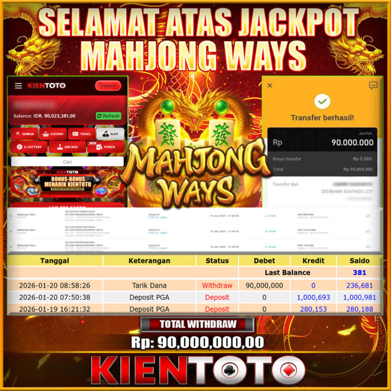 KIENTOTO JACKPOT SLOT Mahjong Ways Rp,90,000.000- LUNAS