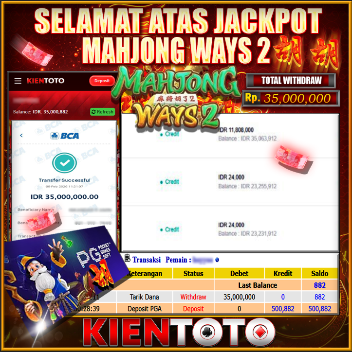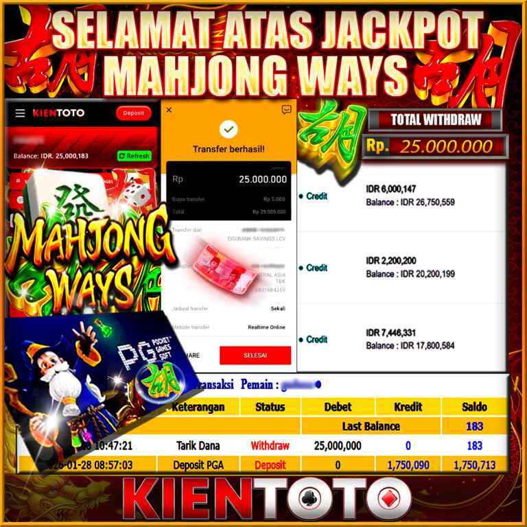 KIENTOTO JACKPOT SLOT Mahjong Ways Rp,25,000.000- LUNAS