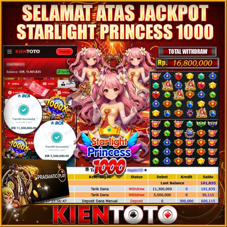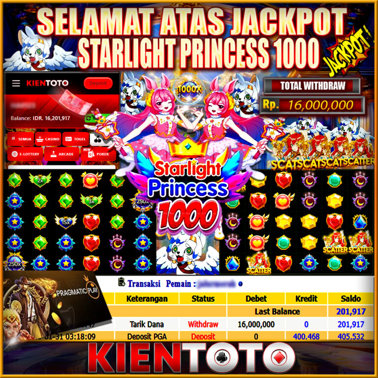 KIENTOTO JACKPOT SLOT Starlight Princess 1000 Rp,16,000.000- LUNAS