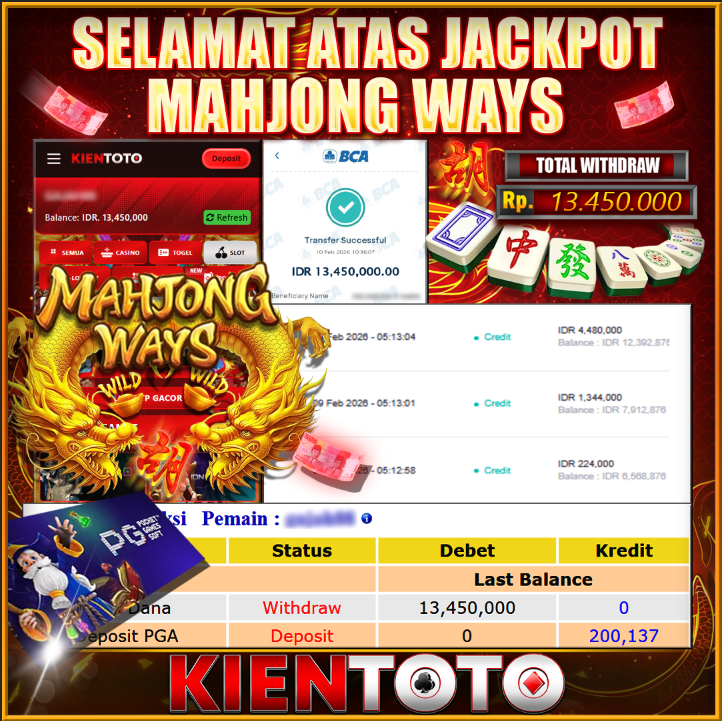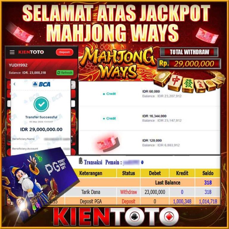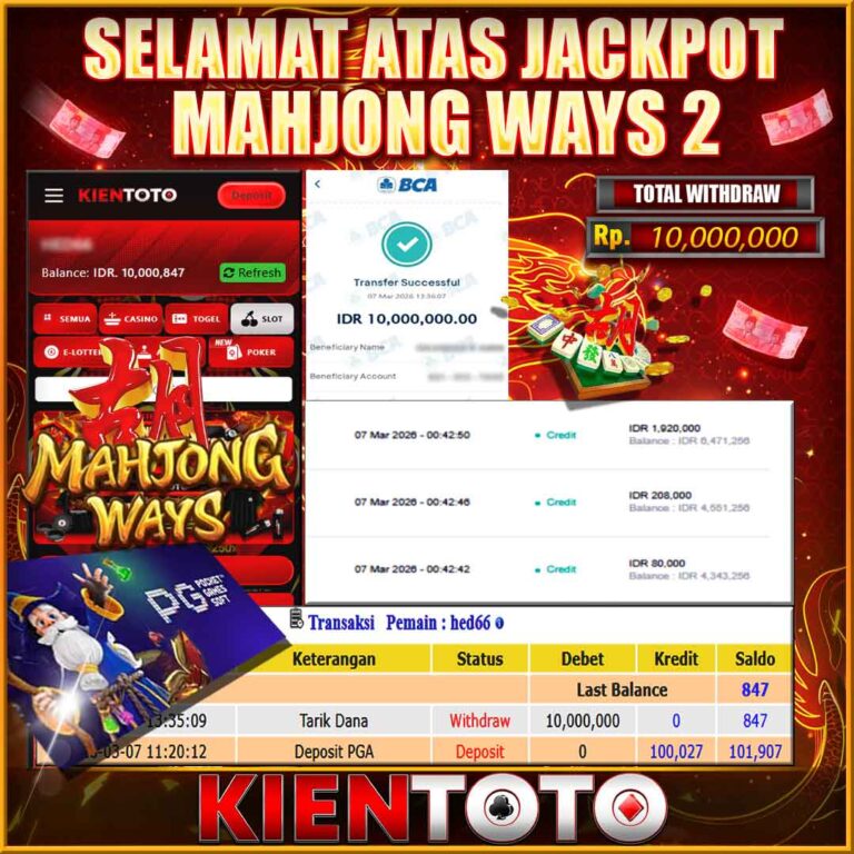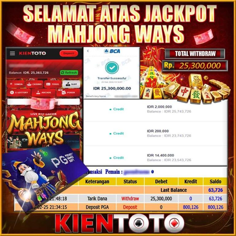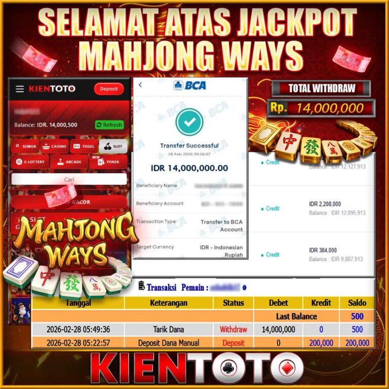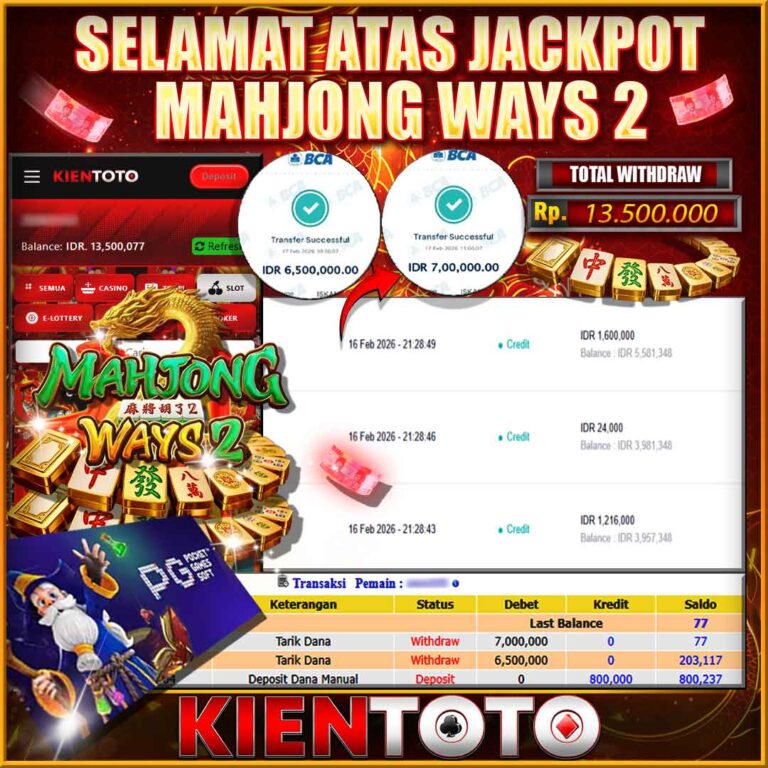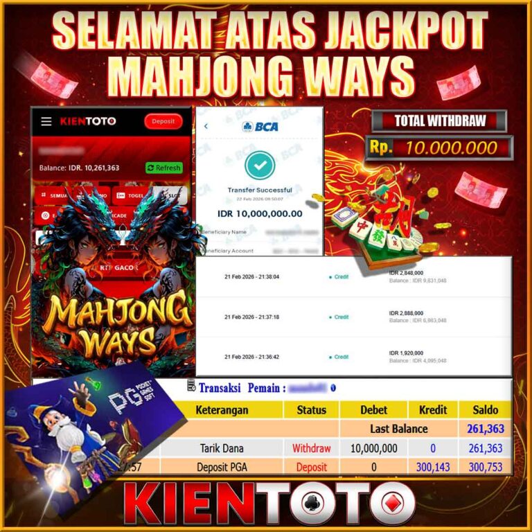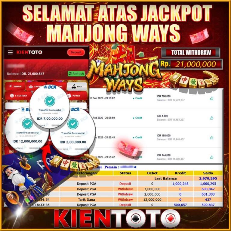 KIENTOTO JACKPOT SLOT MAHJONG WINS 2 Rp21,000.000– SELASA,24,Februari2026Selamat kepada User id JWEN***15 Telah berhasil mendapatkan kemenangan besar pada permainanMAHJONG WINS 2 kemenangan Sebesar Rp21,000.000, Setelah mengisi formulir withdraw dengan kurung waktu hanya 5 – 10 menit pihak KIENTOTO sudah melakukan transfer kepada pemilik User id dan dana sudah dapat di cairkan oleh pemenang. Bukti pembayaran…
