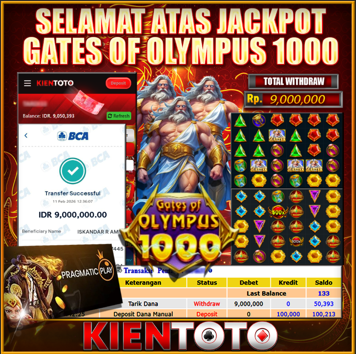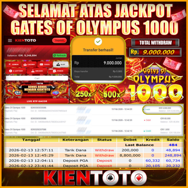 KIENTOTO JACKPOT Gates Of Olympus 1000 Rp9,000.000– JUM,AT,13,Februari2026Selamat kepada User id : YONG***66 Telah berhasil mendapatkan kemenangan besar pada permainanGates Of Olympus 1000 kemenangan Sebesar Rp9,000.000, Setelah mengisi formulir withdraw dengan kurung waktu hanya 5 – 10 menit pihak KIENTOTO sudah melakukan transfer kepada pemilik User id dan dana sudah dapat di cairkan oleh pemenang….