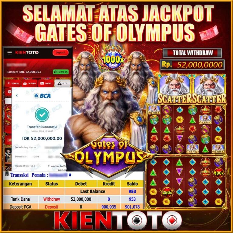 KIENTOTO JACKPOT Gates Of Olympus Rp52,000.000– SENIN,16,Februari2026Selamat kepada User id : AUN***PIN88 Telah berhasil mendapatkan kemenangan besar pada permainanGates Of Olympus kemenangan Sebesar Rp52,000.000, Setelah mengisi formulir withdraw dengan kurung waktu hanya 5 – 10 menit pihak KIENTOTO sudah melakukan transfer kepada pemilik User id dan dana sudah dapat di cairkan oleh pemenang. Bukti pembayaran…