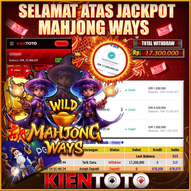 KIENTOTO JACKPOT SLOT Mahjong Ways Rp17.300.000- LUNAS
