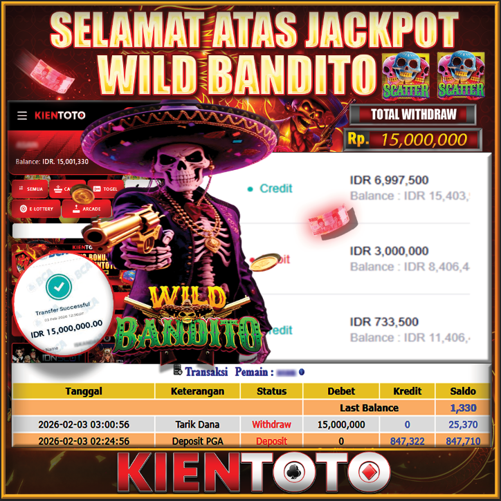 KIENTOTO JACKPOT SLOT Wild Bandito Rp,15,000.000- LUNAS