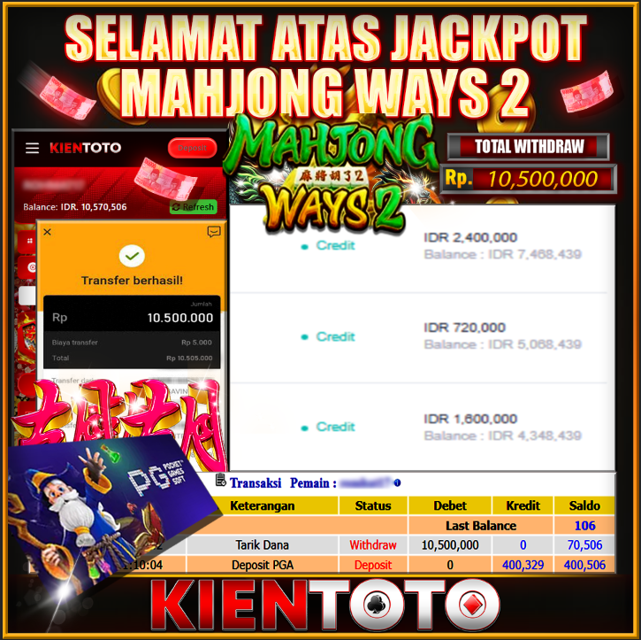 KIENTOTO JACKPOT SLOT MAHJONG WINS 2 Rp21.000.000- LUNAS