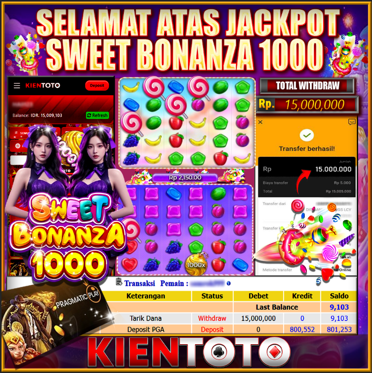 KIENTOTO JACKPOT SLOT Sweet Bonanza 1000 Rp,15,000.000- LUNAS