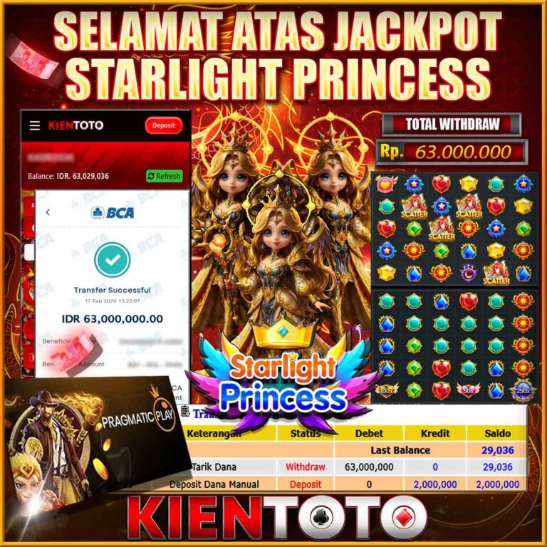 KIENTOTO JACKPOT Starlight Princess Rp63,000.000– SELASA,17,Februari2026Selamat kepada User id : KUNG***96 Telah berhasil mendapatkan kemenangan besar pada permainanStarlight Princess kemenangan Sebesar Rp63,000.000, Setelah mengisi formulir withdraw dengan kurung waktu hanya 5 – 10 menit pihak KIENTOTO sudah melakukan transfer kepada pemilik User id dan dana sudah dapat di cairkan oleh pemenang. Bukti pembayaran yang kami…