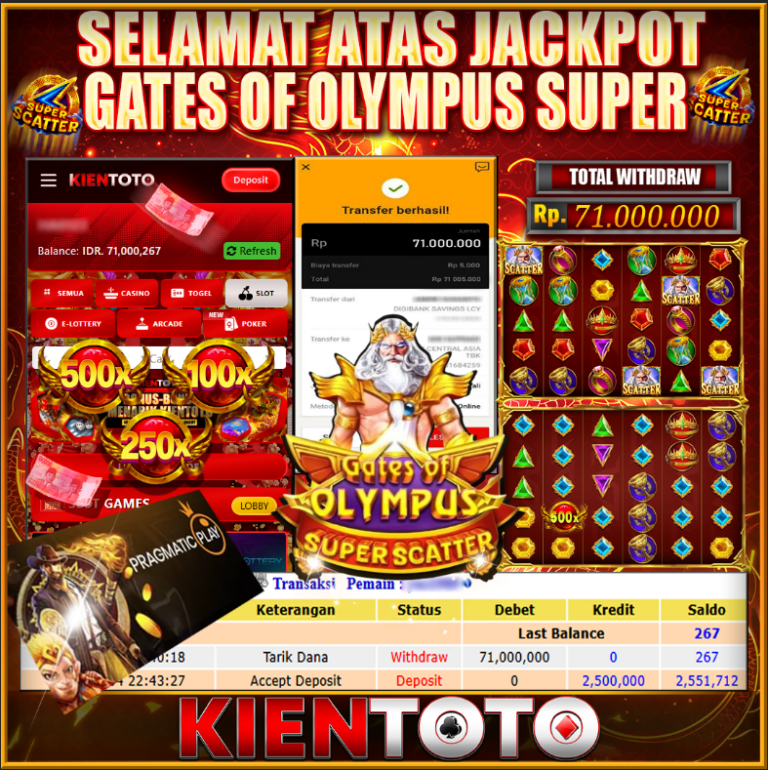 KIENTOTO JACKPOT Gates Of Olympus Super Scatter Rp71,000.000- KAMIS ,05 Februari2026Selamat kepada User id : GCOR***45 Telah berhasil mendapatkan kemenangan besar pada permainanGates Of Olympus Super Scatter kemenangan Sebesar Rp71,000.000, Setelah mengisi formulir withdraw dengan kurung waktu hanya 5 – 10 menit pihak KIENTOTO sudah melakukan transfer kepada pemilik User id dan dana sudah dapat…