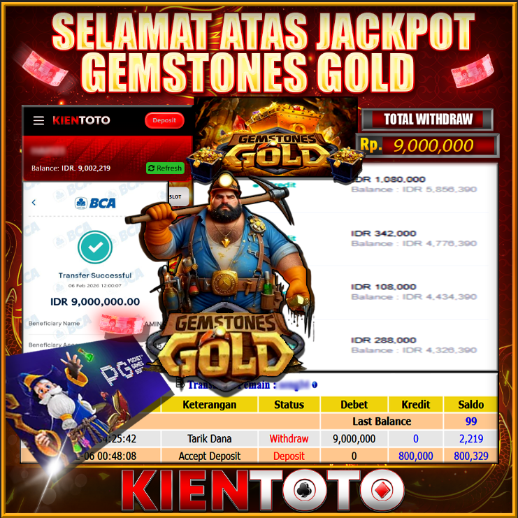 KIENTOTO JACKPOT SLOT Gemstones Gold Rp,9,000.000- LUNAS