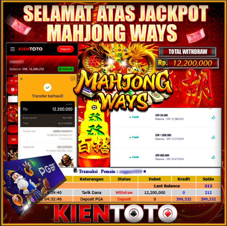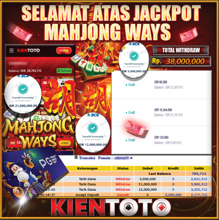 KIENTOTO JACKPOT SLOT MAHJONG WAYS Rp12,000.000– JUMAT,20,Februari2026Selamat kepada User id : AHIAH***251 Telah berhasil mendapatkan kemenangan besar pada permainanSLOT MAHJONG WAYS kemenangan Sebesar Rp12,000.000, Setelah mengisi formulir withdraw dengan kurung waktu hanya 5 – 10 menit pihak KIENTOTO sudah melakukan transfer kepada pemilik User id dan dana sudah dapat di cairkan oleh pemenang. Bukti pembayaran…