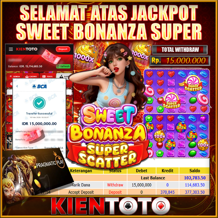 KIENTOTO JACKPOT Sweet Bonanza Super Scatter Rp15,000.000– SELASA ,10,Februari2026Selamat kepada User id : acin***11 Telah berhasil mendapatkan kemenangan besar pada permainanSweet Bonanza Super Scatter kemenangan Sebesar Rp15,000.000, Setelah mengisi formulir withdraw dengan kurung waktu hanya 5 – 10 menit pihak KIENTOTO sudah melakukan transfer kepada pemilik User id dan dana sudah dapat di cairkan oleh…