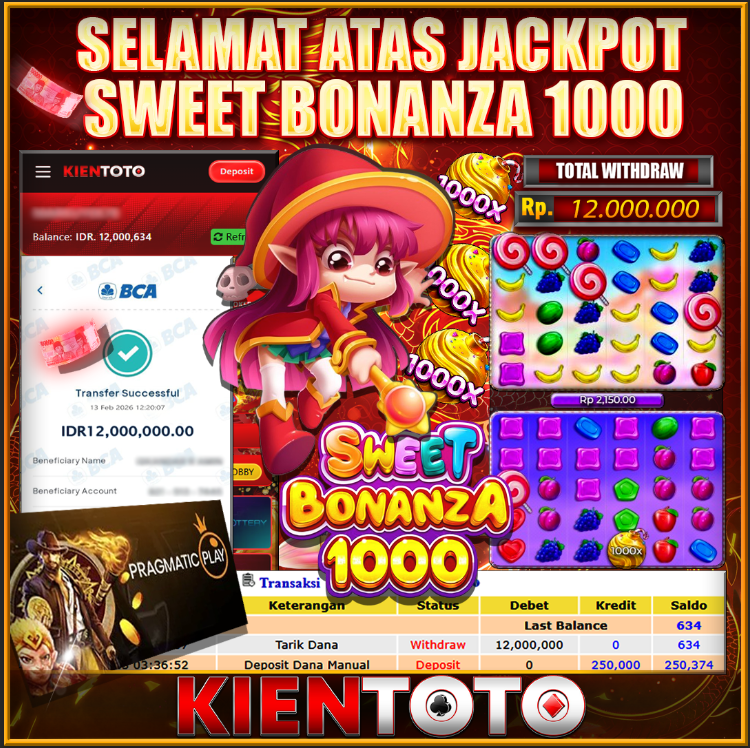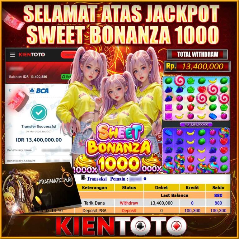 KIENTOTO JACKPOT Sweet Bonanza 1000 Rp12,000.000– JUM,AT,13,Februari2026Selamat kepada User id : BUN***AM45 Telah berhasil mendapatkan kemenangan besar pada permainanSweet Bonanza 1000 kemenangan Sebesar Rp12,000.000, Setelah mengisi formulir withdraw dengan kurung waktu hanya 5 – 10 menit pihak KIENTOTO sudah melakukan transfer kepada pemilik User id dan dana sudah dapat di cairkan oleh pemenang. Bukti pembayaran…