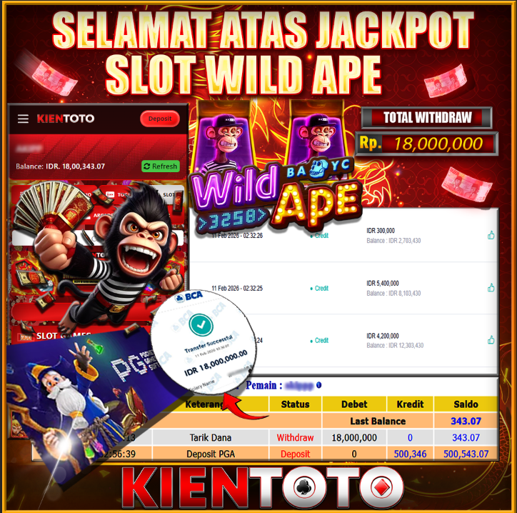 KIENTOTO JACKPOT SLOT Wild Ape Rp,18.000.000- LUNAS