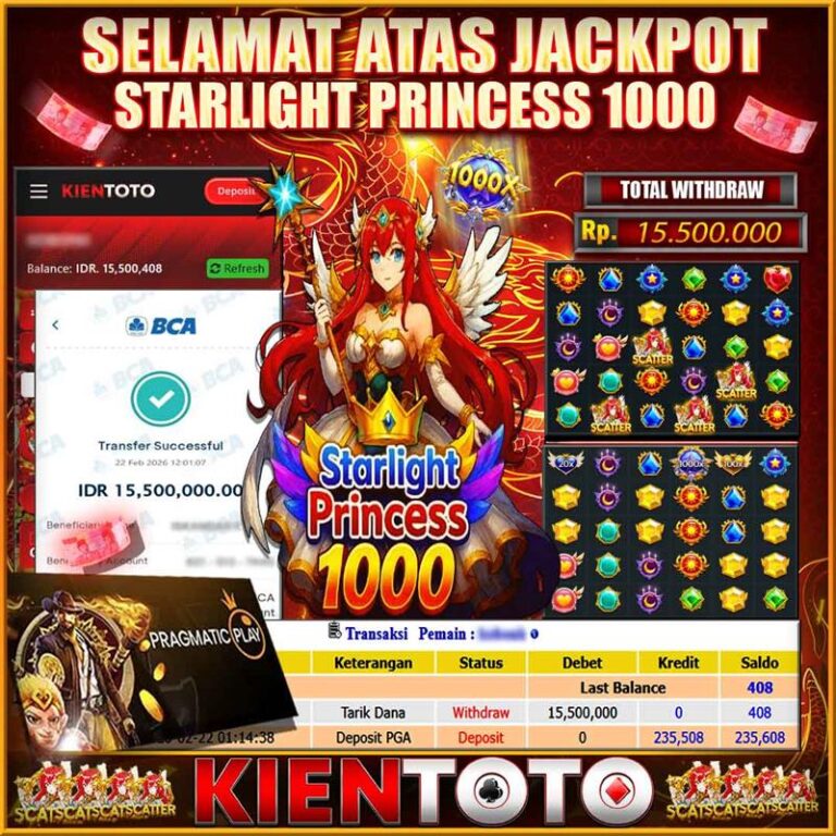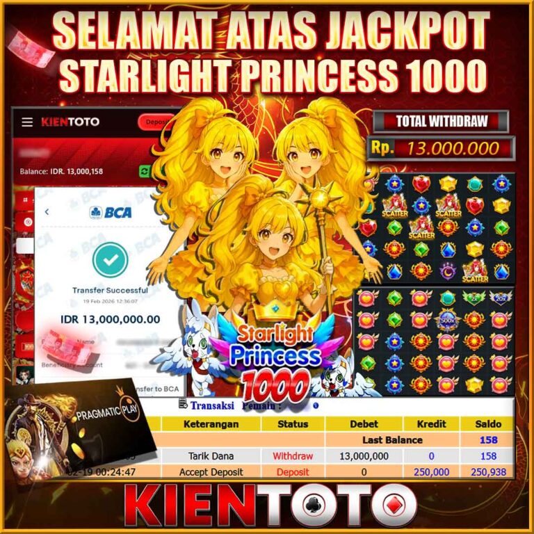 KIENTOTO JACKPOT Starlight Princess 1000 Rp13,000.000– KAMIS,19,Februari2026Selamat kepada User id : REIN***110 Telah berhasil mendapatkan kemenangan besar pada permainanStarlight Princess 1000 kemenangan Sebesar Rp13,000.000, Setelah mengisi formulir withdraw dengan kurung waktu hanya 5 – 10 menit pihak KIENTOTO sudah melakukan transfer kepada pemilik User id dan dana sudah dapat di cairkan oleh pemenang. Bukti pembayaran…