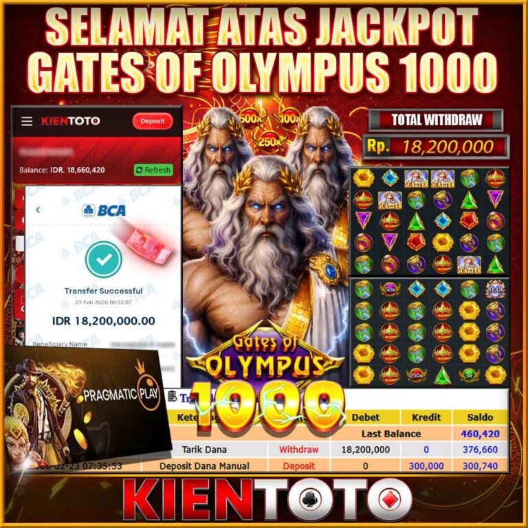 KIENTOTO JACKPOT SLOT Gates Of Olympus 1000 Rp18,200.000– SENIN,23,Februari2026Selamat kepada User id WANG***LO88 Telah berhasil mendapatkan kemenangan besar pada permainanGates Of Olympus 1000 kemenangan Sebesar Rp18,200.000, Setelah mengisi formulir withdraw dengan kurung waktu hanya 5 – 10 menit pihak KIENTOTO sudah melakukan transfer kepada pemilik User id dan dana sudah dapat di cairkan oleh pemenang….