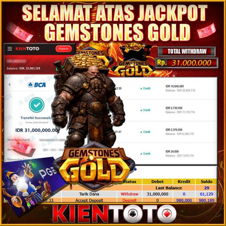 KIENTOTO JACKPOT Gemstones Gold Rp55,000.000- MINGGU,25 JANUARY 2026Selamat kepada User id : sab***32 Telah berhasil mendapatkan kemenangan besar pada permainanGemstones Gold kemenangan Sebesar Rp55,000.000, Setelah mengisi formulir withdraw dengan kurung waktu hanya 5 – 10 menit pihak KIENTOTO sudah melakukan transfer kepada pemilik User id dan dana sudah dapat di cairkan oleh pemenang. Bukti pembayaran…