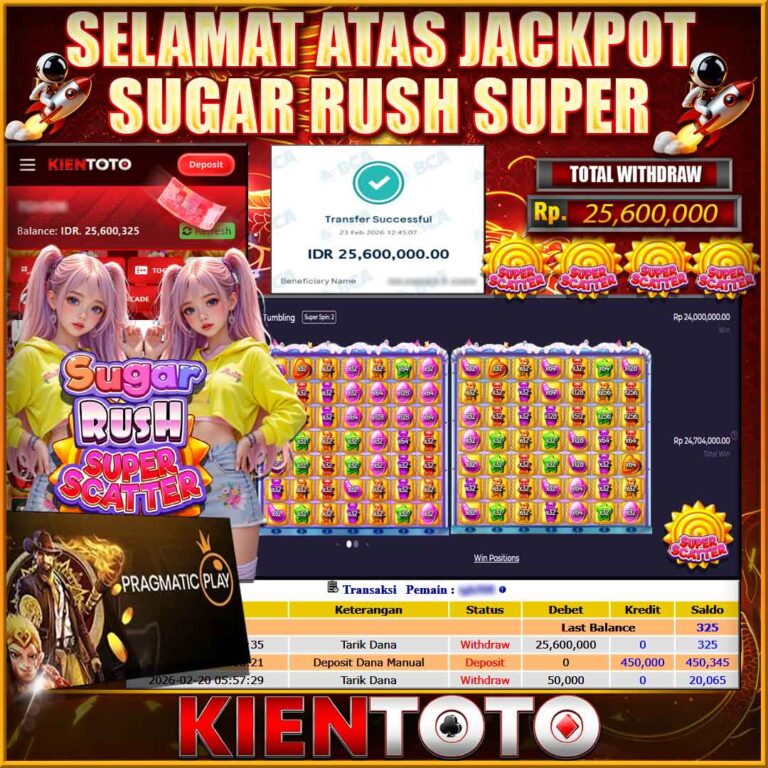 KIENTOTO JACKPOT SLOT SUGAR RUSH SUPER Rp25,600.000– SENIN,23,Februari2026Selamat kepada User id DEDEN***12 Telah berhasil mendapatkan kemenangan besar pada permainan SUGAR RUSH SUPER kemenangan Sebesar Rp25,600.000, Setelah mengisi formulir withdraw dengan kurung waktu hanya 5 – 10 menit pihak KIENTOTO sudah melakukan transfer kepada pemilik User id dan dana sudah dapat di cairkan oleh pemenang. Bukti…