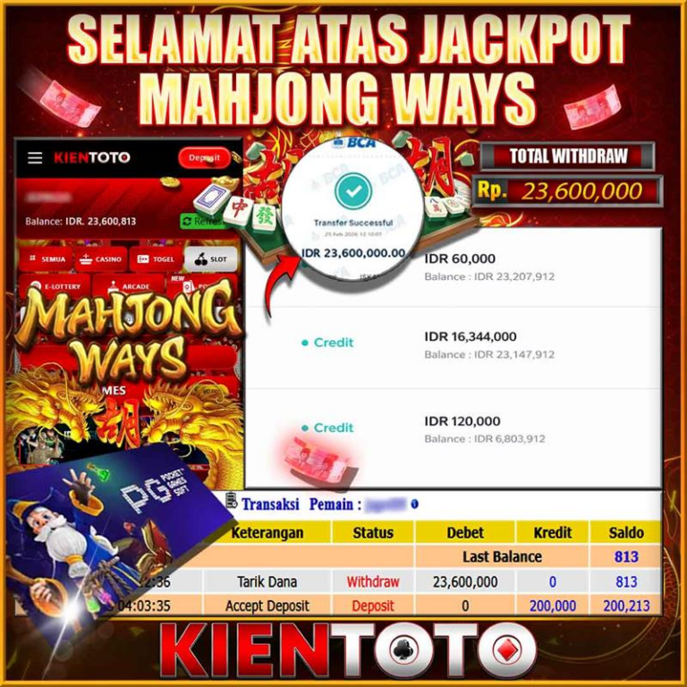 KIENTOTO JACKPOT SLOT MAHJONG WAYS Rp23,600.000– RABU,25,Februari2026Selamat kepada User id RUMBAL***111 Telah berhasil mendapatkan kemenangan besar pada permainanMAHJONG WAYS kemenangan Sebesar Rp23,600.000, Setelah mengisi formulir withdraw dengan kurung waktu hanya 5 – 10 menit pihak KIENTOTO sudah melakukan transfer kepada pemilik User id dan dana sudah dapat di cairkan oleh pemenang. Bukti pembayaran yang kami…