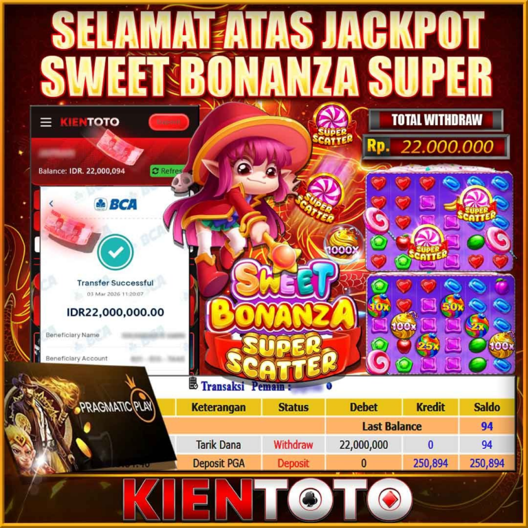 KIENTOTO JACKPOT SLOT SWEET BONANZA SUPER SCATTER Rp22,000.000– SELASA,03,MARET2026Selamat kepada User id AHMIN***00 Telah berhasil mendapatkan kemenangan besar pada permainanSWEET BONANZA SUPER SCATTER kemenangan Sebesar Rp22,000.000, Setelah mengisi formulir withdraw dengan kurung waktu hanya 5 – 10 menit pihak KIENTOTO sudah melakukan transfer kepada pemilik User id dan dana sudah dapat di cairkan oleh pemenang….