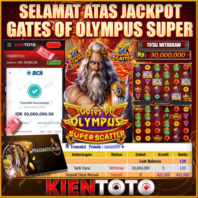 KIENTOTO JACKPOT SLOT GATES OF OLYMPUS SUPER SCATTER Rp30,000.000– RABU ,04,MARET2026Selamat kepada User id SERTB***22 Telah berhasil mendapatkan kemenangan besar pada permainanGATES OF OLYMPUS SUPER SCATTER kemenangan Sebesar Rp30,000.000, Setelah mengisi formulir withdraw dengan kurung waktu hanya 5 – 10 menit pihak KIENTOTO sudah melakukan transfer kepada pemilik User id dan dana sudah dapat di…