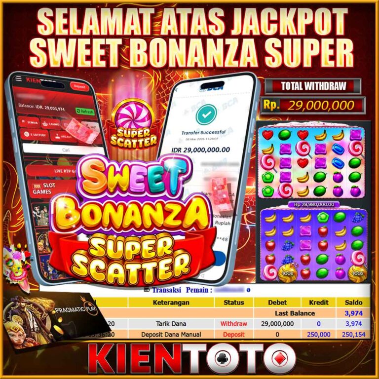 KIENTOTO JACKPOT SLOT SWEET BONANZA SUPER SCATTER Rp29,000.000– KAMIS ,05 ,MARET2026Selamat kepada User id sene***30 Telah berhasil mendapatkan kemenangan besar pada permainanSWEET BONANZA SUPER SCATTER kemenangan Sebesar Rp29,000.000, Setelah mengisi formulir withdraw dengan kurung waktu hanya 5 – 10 menit pihak KIENTOTO sudah melakukan transfer kepada pemilik User id dan dana sudah dapat di cairkan…