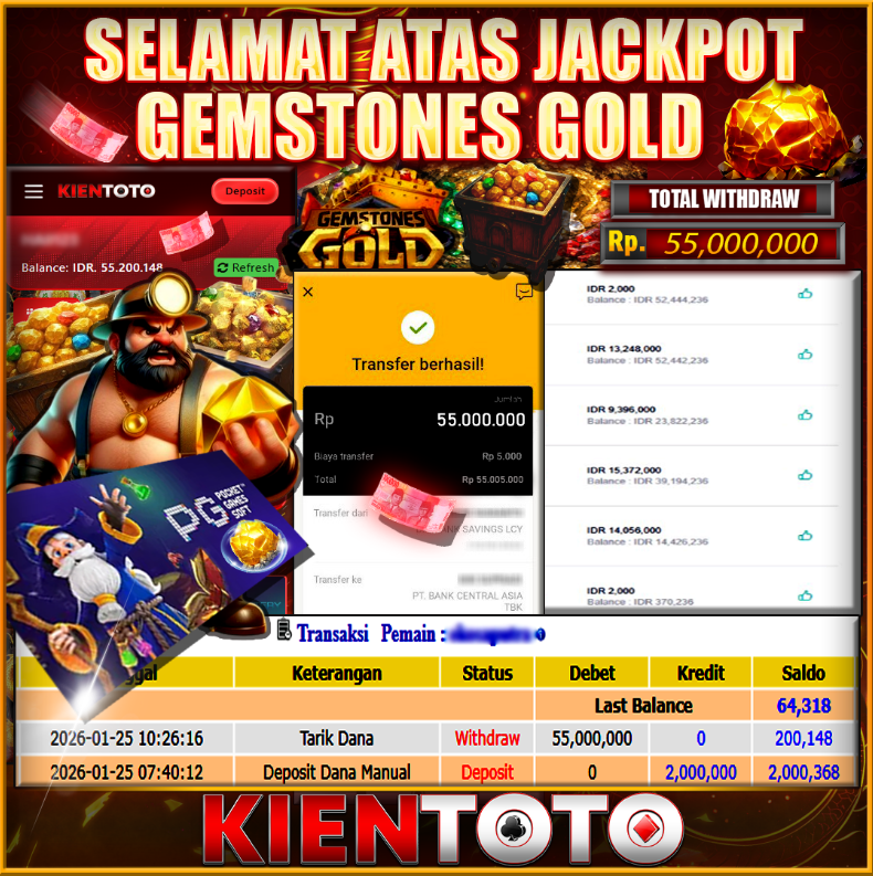KIENTOTO JACKPOT Gemstones Gold Rp55,000.000- MINGGU,25 JANUARY 2026
