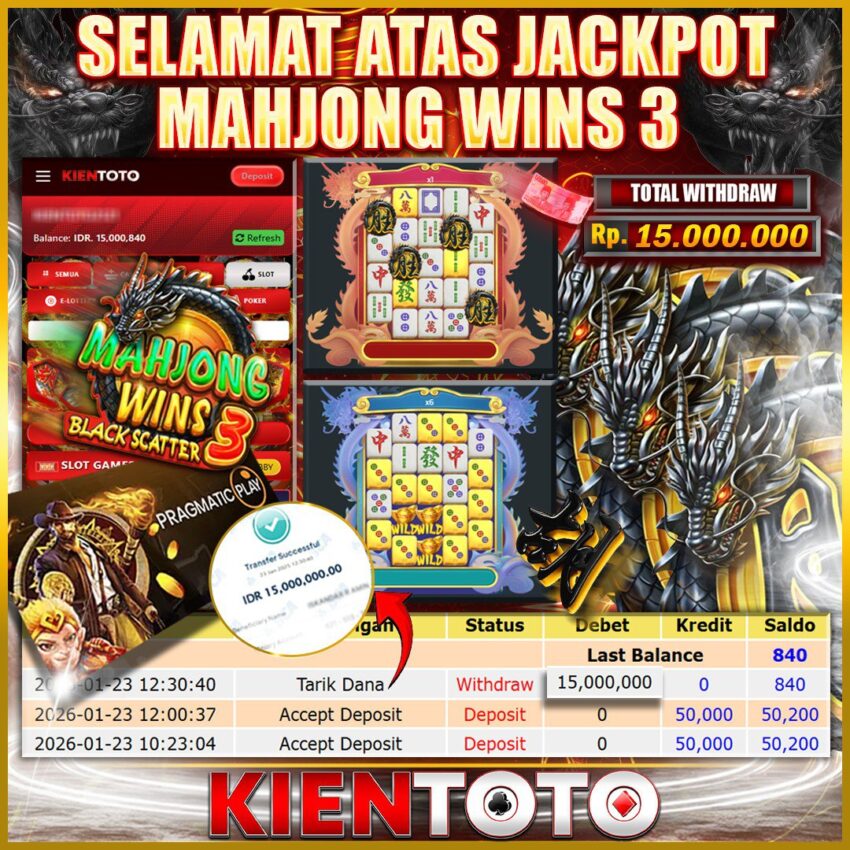 KIENTOTO JACKPOT Mahjong Wins 3 – Black Scatter Rp15,000.000- JUM,AT ,23 JANUARY 2026