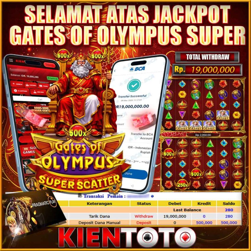 KIENTOTO JACKPOT SLOT GATES OF OLYMPUS SUPER SCATTER Rp19,000.000– SENIN,09,MARET2026