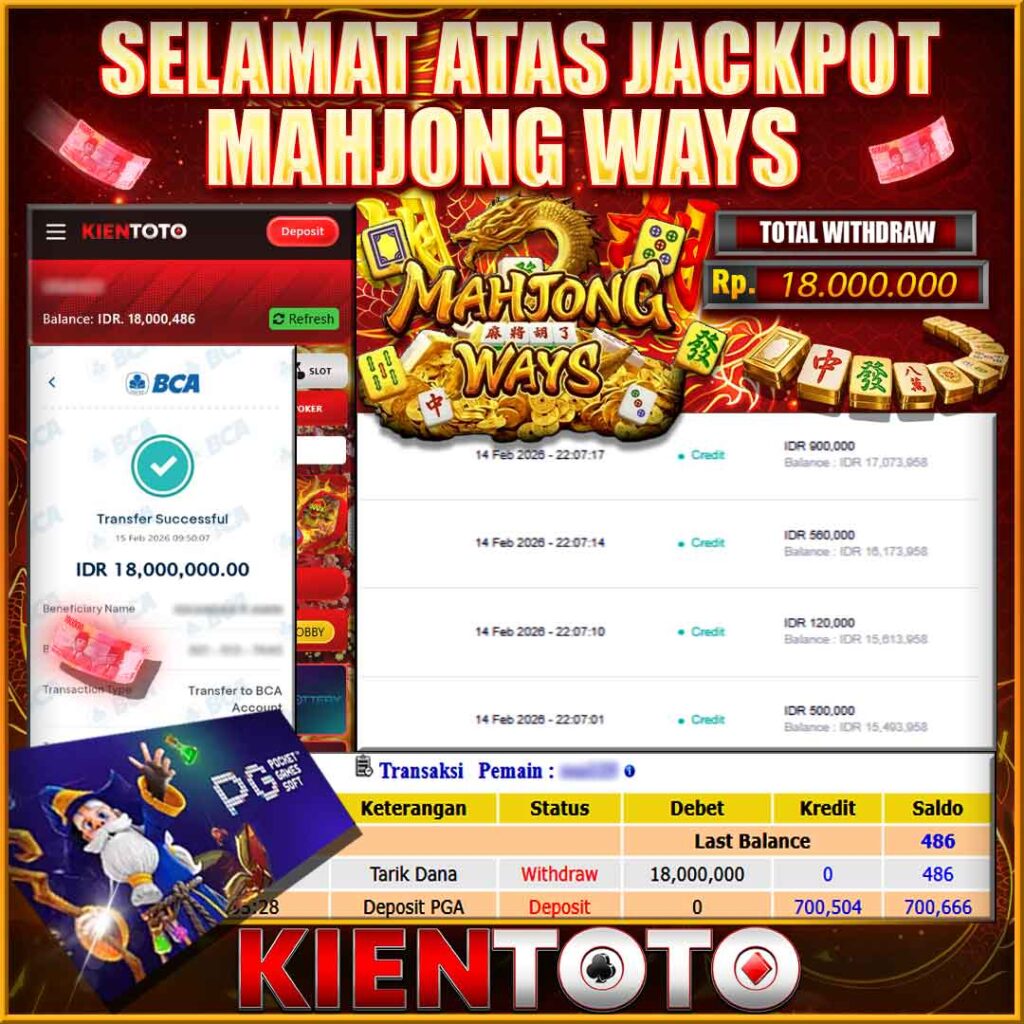 KIENTOTO JACKPOT Mahjong Ways Rp18,000.000– MINGGU,15,Februari2026