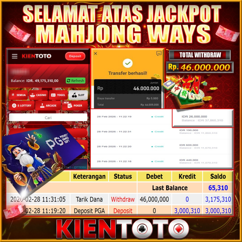 KIENTOTO JACKPOT SLOT MAHJONG WAYS Rp46,000.000– SABTU,28,Februari2026