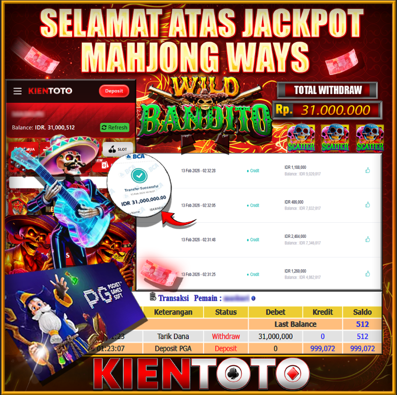 KIENTOTO JACKPOT Wild Bandito Rp31,000.000– JUM,AT,13,Februari2026